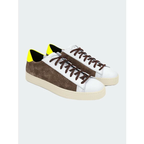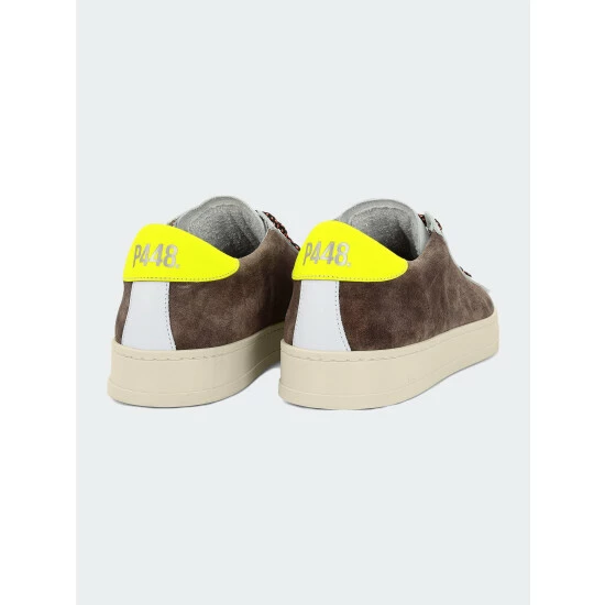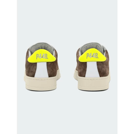 Meet the Jack Avana, the best-selling low-top featuring a brown suede upper, white leather tongue, trim & toe, and finished with a fluo yellow tread and tubular multicolored laces for an added cool factor.