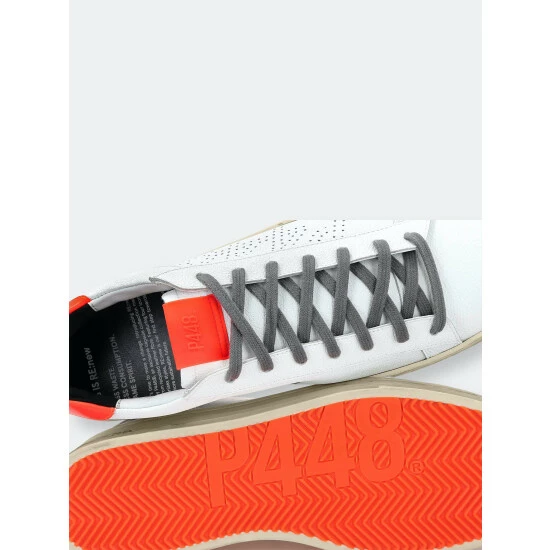 – White recycled leather upper, trim, tongue & toe with perforated P448 logo