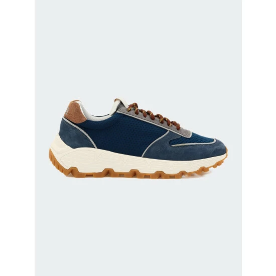 – Blue knitted mesh upper with denim blue nubuck leather upper with light grey suede piping