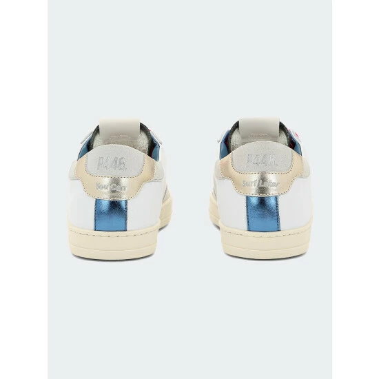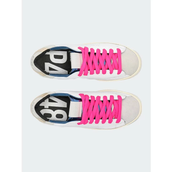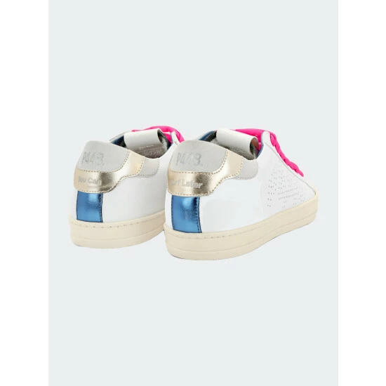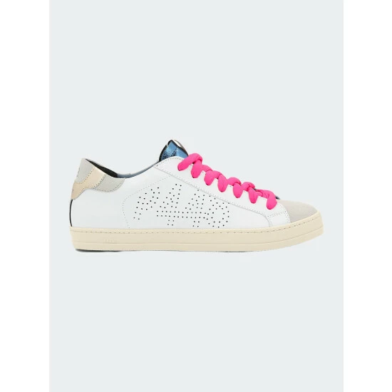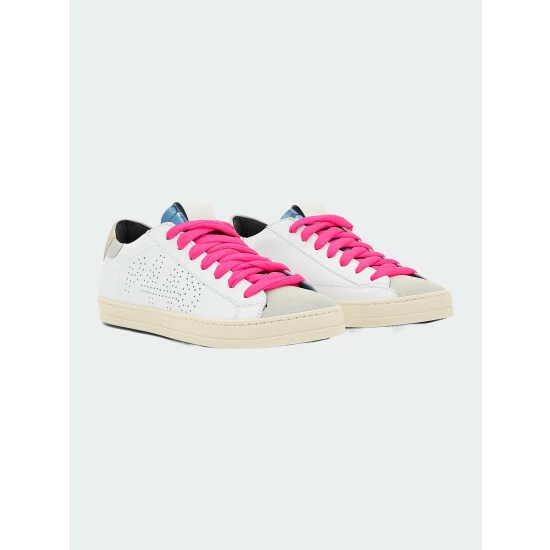 Style without limits – meet the Limitless Collection, new evergreen line of silhouettes in an extended size range. Meet the John White/Lami, a can’t miss version of the fan-favorite John silhouette featuring white calf leather with a dusty-blue metallic tongue, an off-white suede toe, off-white leather trim, a gold metallic heel tab and finished with fuchsia nylon puffer laces.