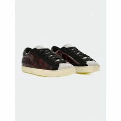 Meet the John Turtle, the classic low-top silhouette featuring a neutral black-brown tortoise printed patent-leather upper, balanced by a beige suede tongue & toe, black suede trim, black leather heel tab and finished with fluo yellow accents and tread for a pop of color.