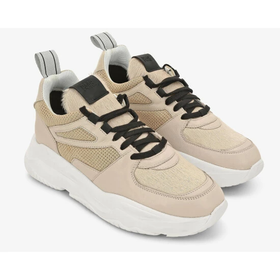 Meet the Luke River, the chunky sport-inspired silhouette, in a neutral colorway featuring a camel knit upper, camel hair calf tongue & toe, nude leather trim and heel tab and black cotton laces.