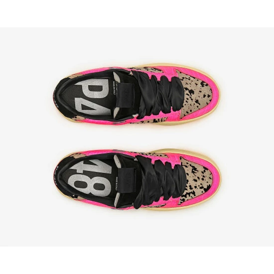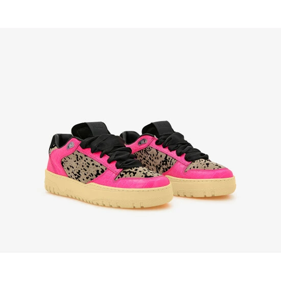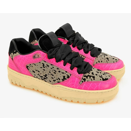 Meet the Mason Fluo Leopard, the Mason silhouette you know and love with a snow-leopard printed upper & toe, black suede tongue & heel tab and trimmed with fluorescent croc-embossed trim. Finished with black satin laces.