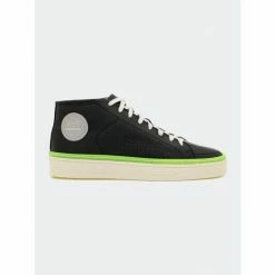 Meet the Rocky Line, our newest high-top silhouette featuring a black calf leather upper, tongue, toe & heel tab with transparent fluorescent yellow piping detail, and finished with cream cotton laces and a fluorescent yellow tread.