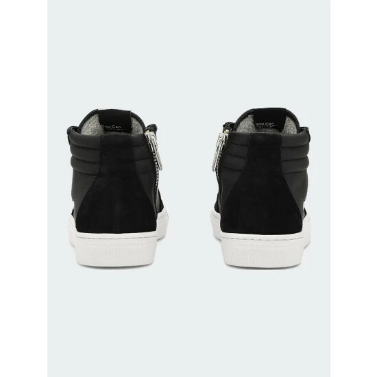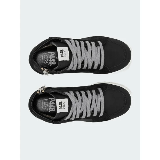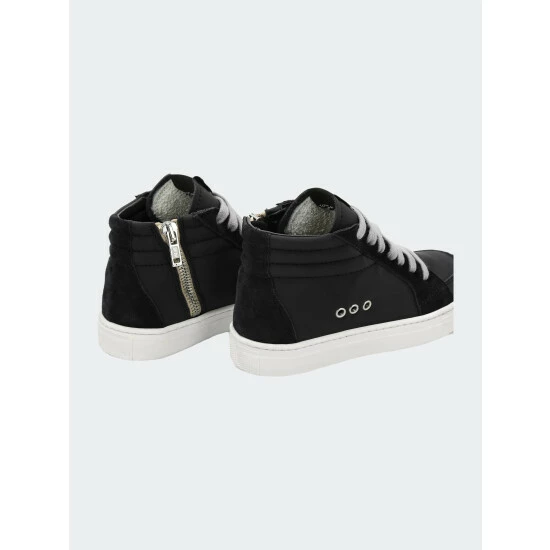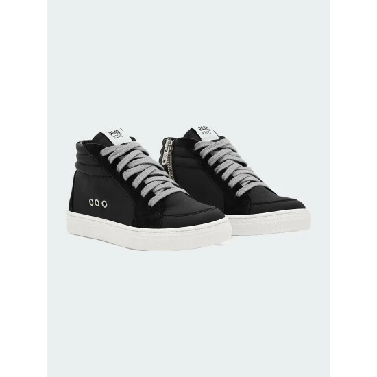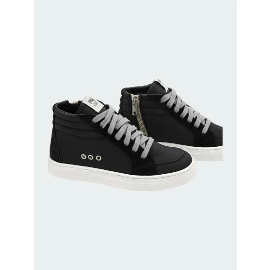 The Skate Jr. Recycled Black is an earth-friendly version of the skate culture-inspired high-top silhouette featuring a black recycled leather upper, tongue, & toe and black recycled suede trim & heel tab. Finished off with grey recycled organic cotton laces.