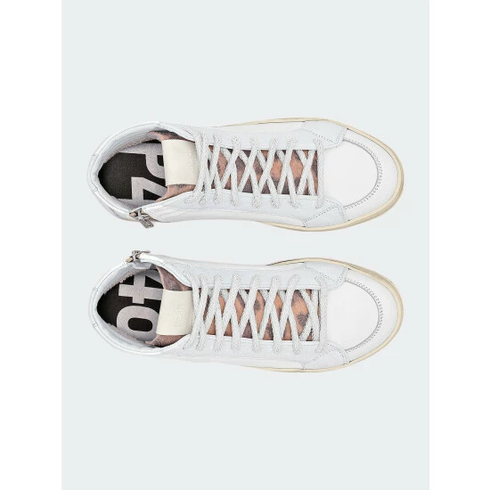 – White crackled naplack leather heel tab & trim