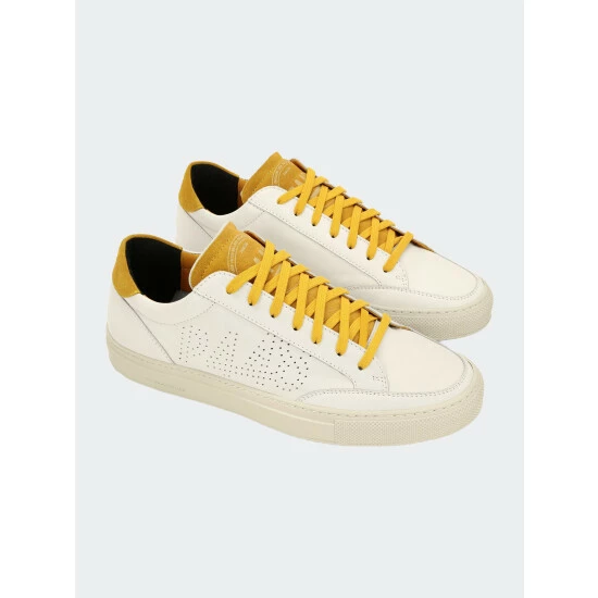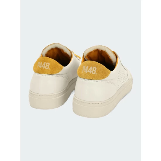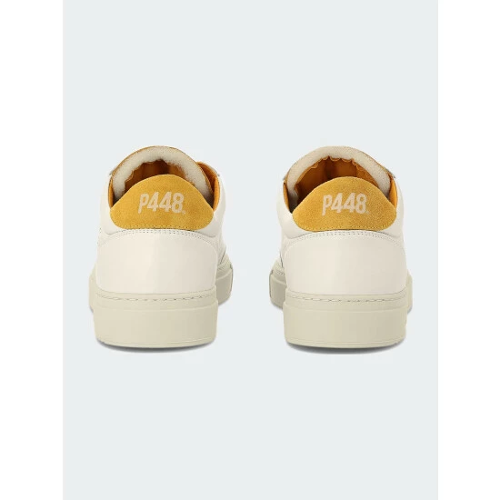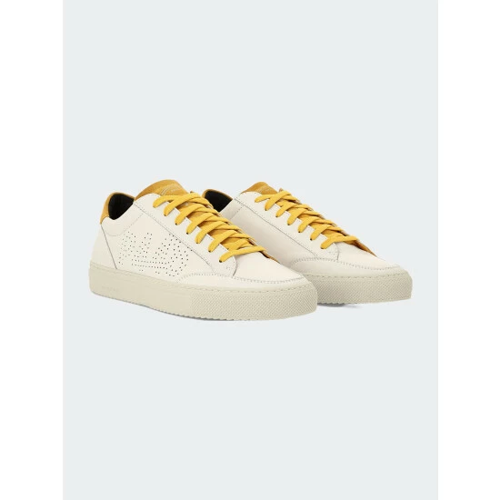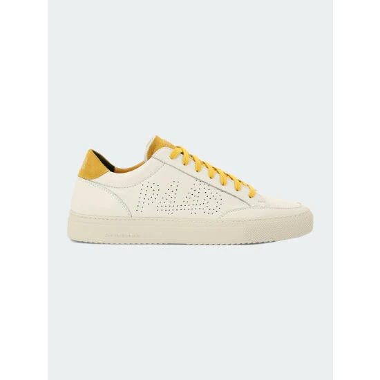 The Soho Cream/Mustard is a brightened-up version of the casual low-top silhouette featuring a cream leather upper, trim & toe with a mustard yellow suede tongue, heel tab, and mustard yellow laces.