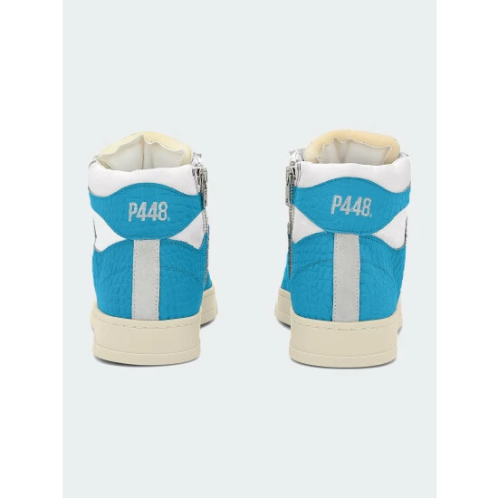 – Aqua blue croco-embossed leather upper with perforated P448 logo
