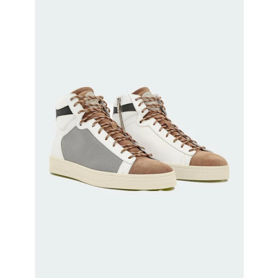 – White calf leather upper with light grey nylon canvas accent