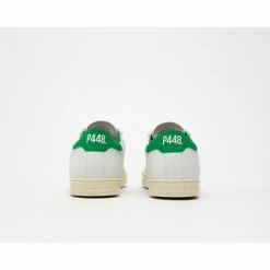 The Taylor Tamigi is retro-inspired high-top silhouette with a white leather upper, ankle shaft and trim, cashmere suede tongue & toe, royal blue suede heel tab, and finished with a cashmere suede heel printed with the P448 logo.